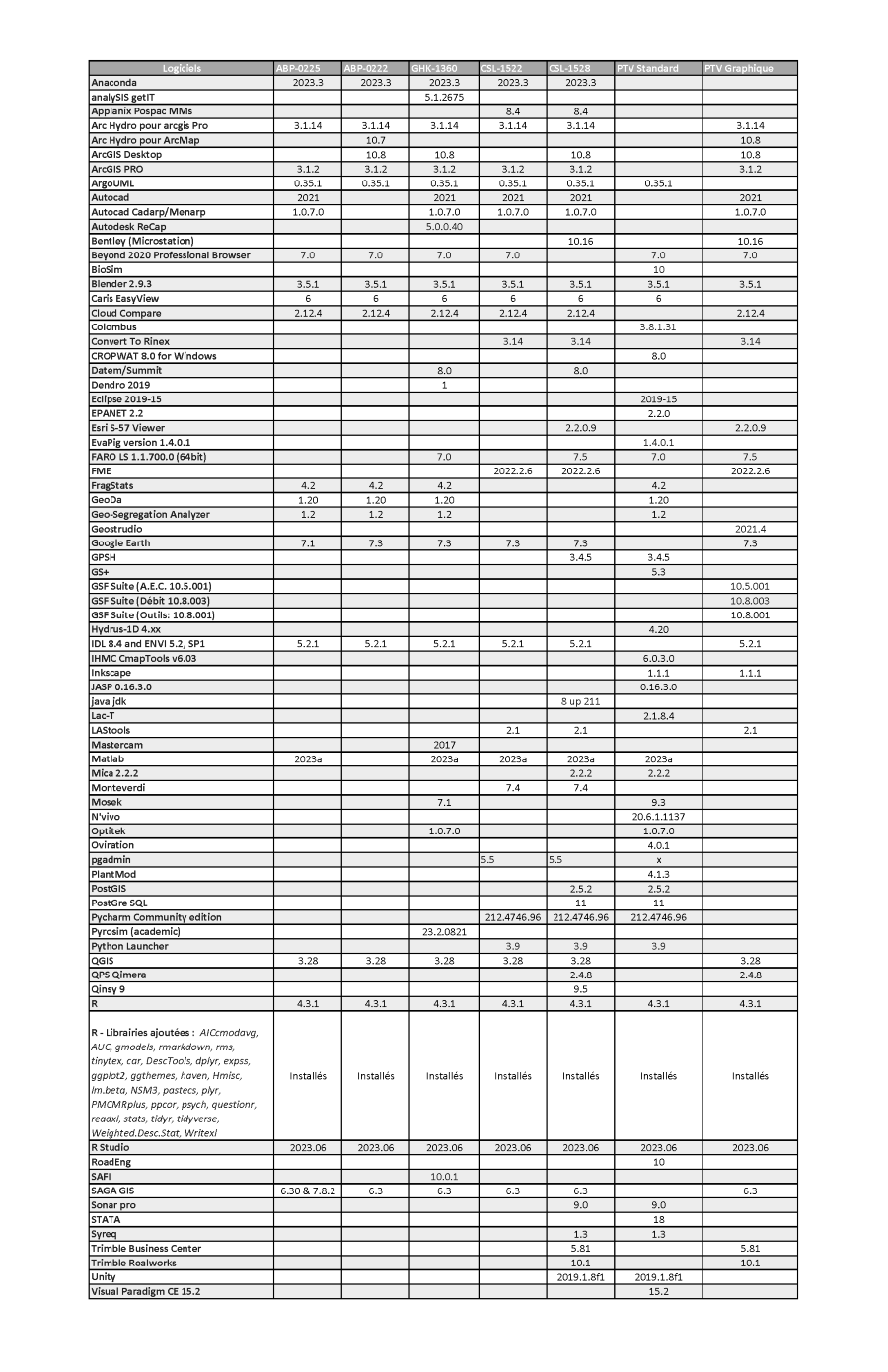 Logiciels installés dans les laboratoires FFGG et PTV (H-2025)